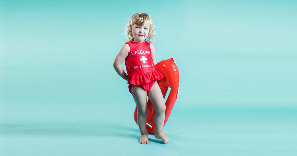Perfect swimsuit for Tiny beach lovers. Lifeguard print on chest.